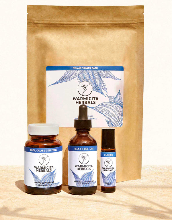 "I am in love with the Relax & Recharge kit by Warmicita Herbals! My sleep quality and my mood improved ever since I got started on the program. These plants do magic for your nervous system and adrenals, and make you feel calmer and more grounded. Plus you’ll get to take the most beautiful and relaxing aromatic flower bath as a part of the process! The Unwind essential oils roll-on smells fantastic, is very relaxing, and feels great on my skin. It’s one of my very favorite additions to my beauty and wellness routine!" ~ K B, Brooklyn NY