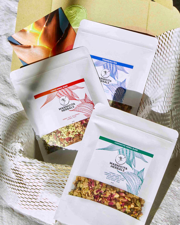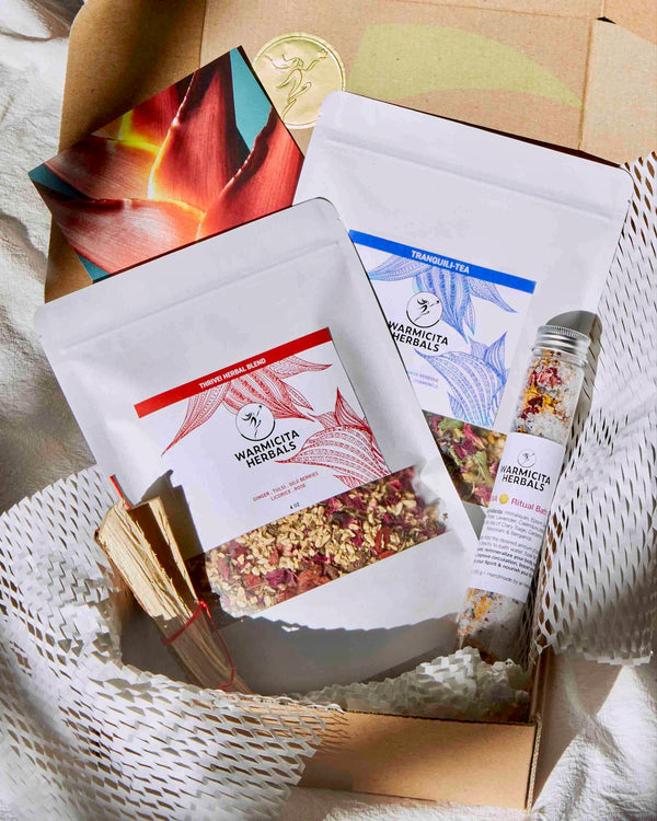 For single products & herbal wellness kits please visit our shop HERE to choose from a variety of our delicious & highly aromatic teas, essential oil roll-ons, luxurious baths, signature health kits, gift cards* & more.